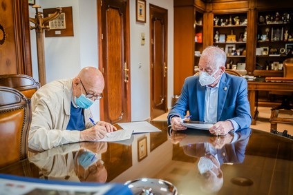 ROQUETAS DE MAR.- El alcalde firma un convenio de colaboración con el Banco de Alimentos de Almería