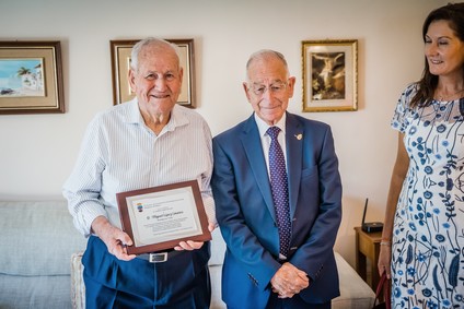 El homenaje se realiza coincidiendo con las fiestas en honor a la Virgen del Rosario, patrona del municipio. Acompañado por su familia, Miguel Varón ha intercambiado con el alcalde recuerdos y vivencias y Amat le ha entregado una placa como homenaje y reconocimiento a su trayectoria tanto personal como profesional.