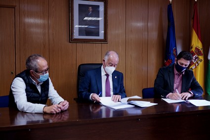 El Ayuntamiento de Roquetas de Mar ha firmado este pasado viernes en el salón de plenos un convenio con la Iglesia Penticostala Rumana Elim. El alcalde, Gabriel Amat, ha presidido el acto, acompañado por el padre Iom Radu Gale y el secretario municipal, Guillermo Lago.