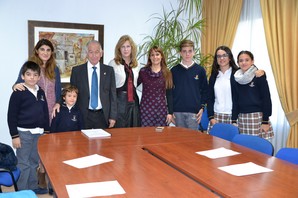 ROQUETAS DE MAR.- El colegio Portocarrero entrega al alcalde un proyecto sobre los niños refugiados