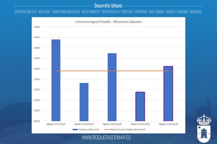 Las cantidades estimadas indican que entre el Viernes de Dolores y el Domingo de Resurrección hubo una bajada cercana a los 30 millones de litros de agua. “Los datos, por desgracia, ponen de relieve la paralización del sector servicios, tanto en su vertiente turística como para aquellos que tienen su segunda residencia en la ciudad. Y es ahí donde habrá que verter nuestros esfuerzos el mismo día que se reinicie la actividad, ya que es un sector clave para Roquetas de Mar”, concluye.