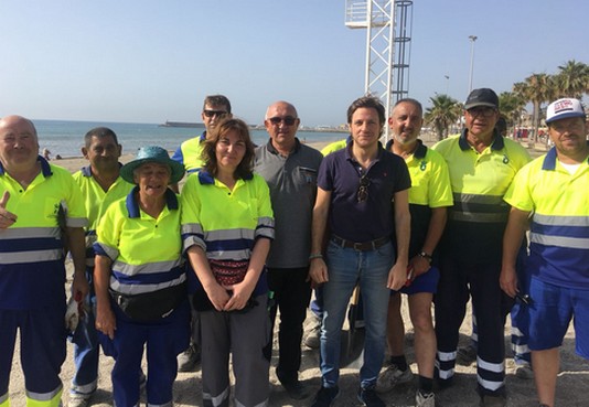 El equipo especial ha finalizado las tareas de limpieza de los 16 kilómetros de litoral a las 10 de la mañana y ha sido felicitado por el concejal de Playas, Luis Miguel Carmona.