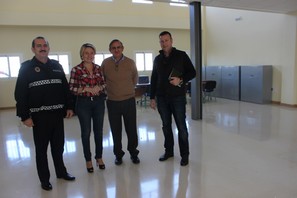 La teniente alcalde del Ayuntamiento de Roquetas de Mar, Eloísa Cabrera, y el secretario general de la Comisaría de la Policía Nacional en Almería, Juan de Dios Fernández Guerrero, acompañados por el inspector jefe de la Policía Local de Roquetas, Miguel Ángel López, han visitado este lunes las instalaciones que albergarán en unas semanas la nueva oficina de expedición de documentos del Cuerpo Nacional de Policía.