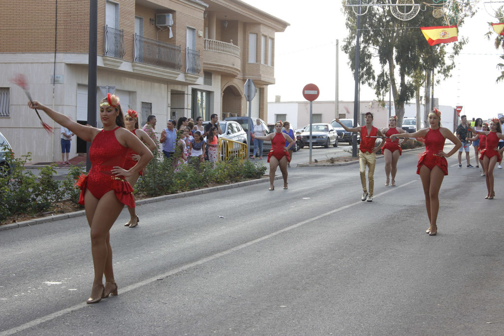 El desfile de carrozas estuvo ambientado por los grupos de baile roqueteros, ‘Kalesy’, la escuela de ‘Rocío Moreno’ y ‘Escuadrón Roquetero’ y al ritmo de la música de la animada charanga ‘Los 500’, procedentes de Granada. El recorrido comenzó en la calle Antequera, continuó por Avenida Motril, calle Bailén, calle Ronda “de nuevo pasamos por la calle Antequera, cruzamos a calle Alcalá Real, pasamos a Lucena y terminamos en la plaza de la Iglesia”, explicó uno de los mayordomos, Javier Moreno.