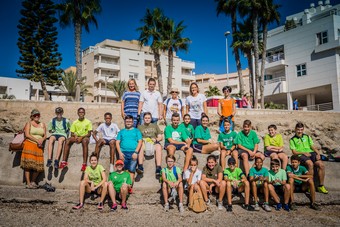 ROQUETAS DE MAR.- Los alumnos de Segundo de la ESO del colegio Al-Bayyana limpian la playa de La Bajadilla