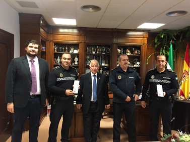 ROQUETAS DE MAR.- Los policías locales Ricardo Alemán y Rafael Moya, premiados con la “Cruz Azul Bronce de Emergencias”