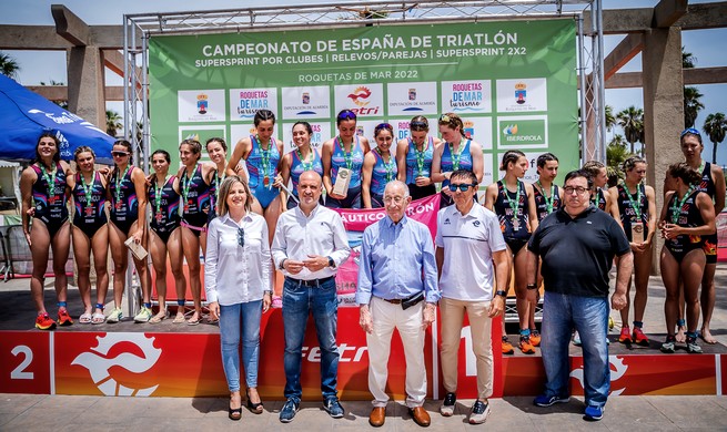 Una vez finalizadas las competiciones se ha llevado a cabo el acto de entrega de medallas y trofeos al que han asistido, el alcalde de Roquetas de Mar, Gabriel Amat, el diputado de Deportes y Juventud, José Antonio García, junto con la concejal de Presidencia, Rocío Sánchez, el concejal de Deportes y Tiempo Libre, José Juan Rubí, el presidente de la Asociación de Alojamientos y Promoción Turística de Roquetas y, José Hidalgo, presidente de la Federación Española de Triatlón.