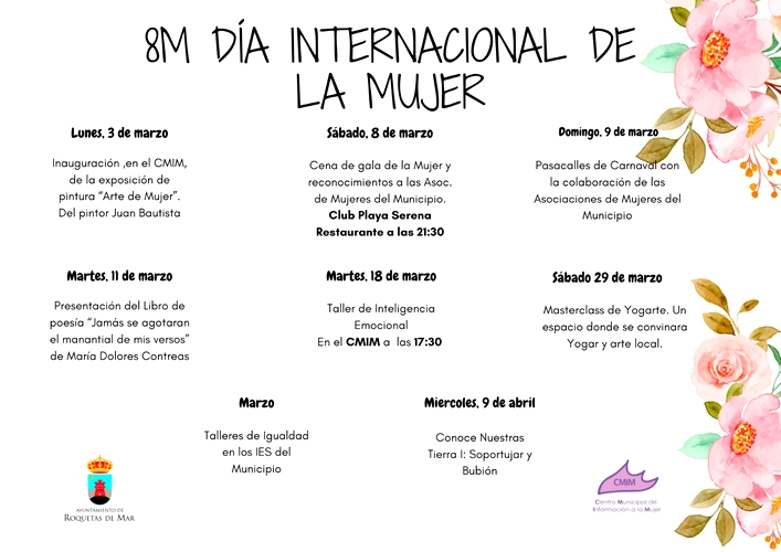 El Ayuntamiento de Roquetas de Mar, a través del área de la Mujer, ha organizado un amplio programa de actividades con motivo del Día Internacional de la Mujer que se conmemora el sábado 8 de marzo.