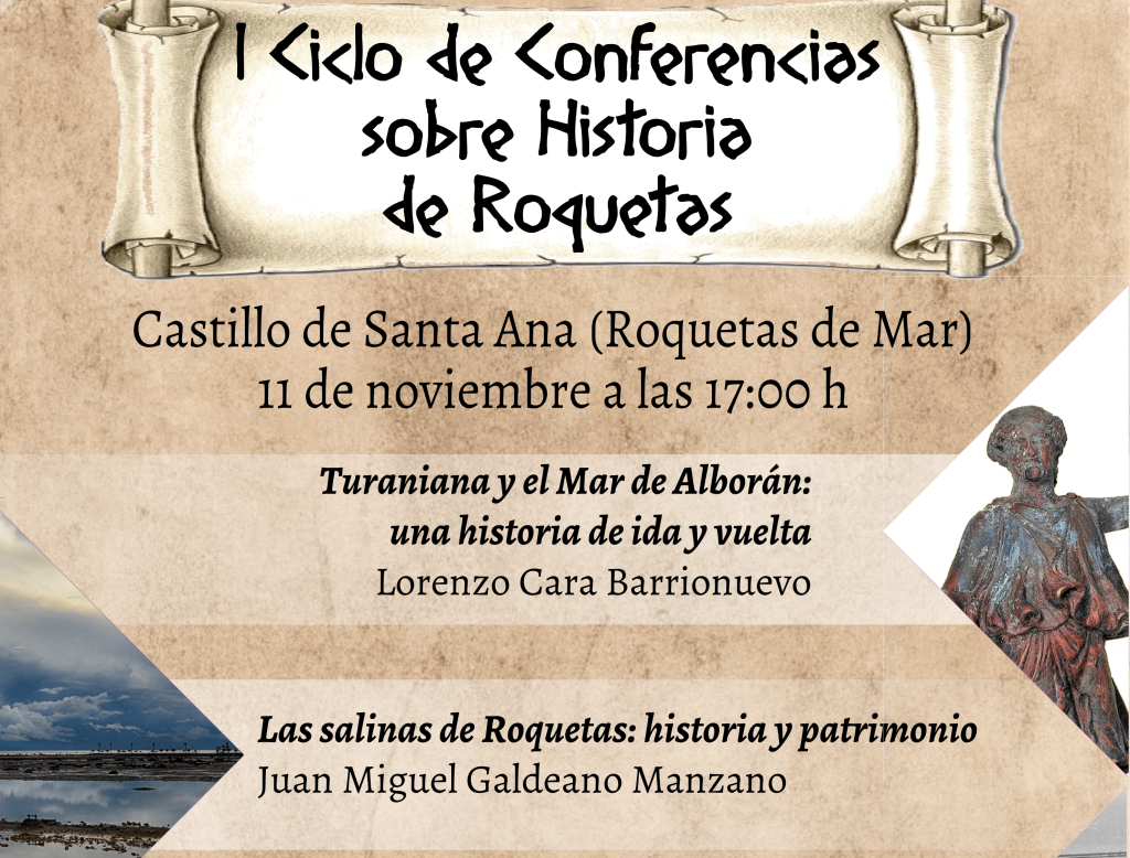 próximo 11 de noviembre tendrá lugar de 17:00 a 20:00 horas el I Ciclo de Conferencias sobre Historia de Roquetas, organizado por la plataforma Unidos por Turaniana en estrecha colaboración con la Asociación Posidonia y la Asociación Amigos de la Alcazaba de Almería. Tendrá lugar en el Castillo de Santa Ana, en Roquetas de Mar, como lugar emblemático de la historia y la cultura de nuestro municipio.