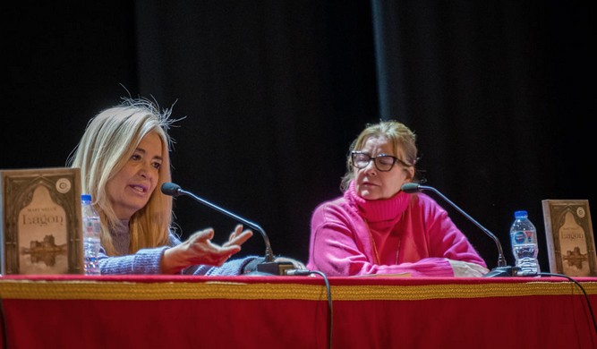 Mary Nelux estuvo acompañada en dicha presentación por Charo Serrano, coordinadora de las Bibliotecas de Roquetas de Mar. Hizo una semblanza de la autora y explicó que “Lagon pertenece al genero de literatura fantástica. Es una literatura que rompe la objetividad, que contiene elementos sobrenaturales o inexplicables y una realidad muy alejada de la que nosotros vivimos”.