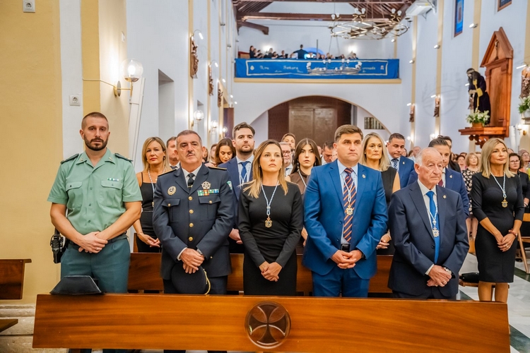 Una hora antes de su salida a las calles de Roquetas para ser arropada por todos los vecinos, la Hermandad Virgen del Rosario Coronada celebró la solemne eucaristía de alabanzas a nuestra Madre del Rosario, que estuvo presidida por el obispo de Almería, Antonio Gómez Cantero y a la que asistieron todos los miembros de la Corporación Municipal, encabezada por el alcalde Gabriel Amat, junto con representantes y res-ponsables de los Cuerpos y Fuerzas de Seguridad, así como, numerosos vecinos del municipio.
