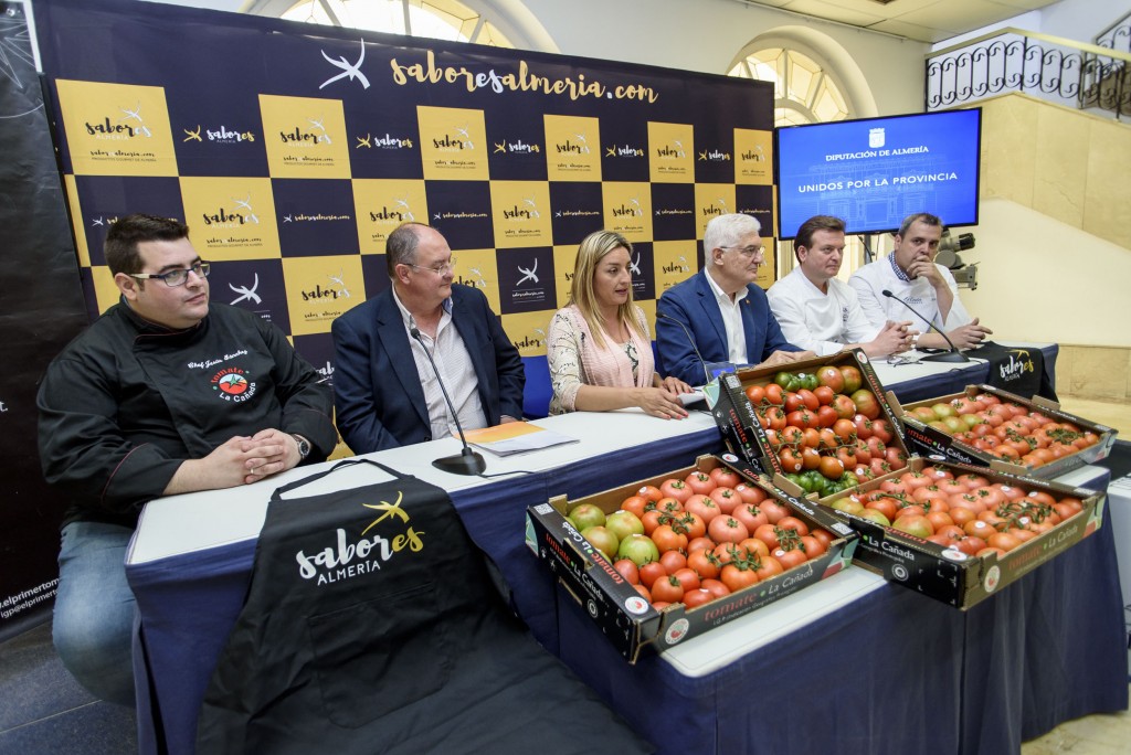 Diputación Provincial de Almería ha acogido la puesta de largo de los cuatro ‘showcooking’ que se han organizado junto a la ‘IGP Tomate La Cañada’ en el ‘stand’ de ‘Sabores Almería’ durante la celebración, del 24 al 27 de abril, del Salón de Gourmets en Madrid. La diputada de Agricultura, María López Asensio, el presidente de la IGP, Francisco López y el director comercial, Miguel Ángel Arenas, han sido los encargados de desvelar los detalles de las demostraciones culinarias junto a tres de los cocineros que viajarán junto a la marca a Madrid.