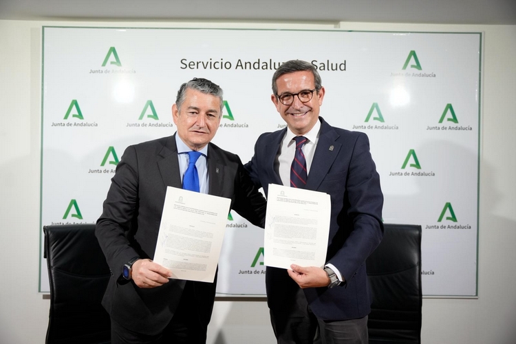 El consejero de Sanidad, Presidencia y Emergencias, Antonio Sanz, y el consejero de Industria, Energía y Minas y presidente de la Agencia Digital de Andalucía (ADA), Jorge Paradela, han suscrito un protocolo de colaboración entre la ADA y el Servicio Andaluz de Salud (SAS) para “impulsar nuevos proyectos de innovación digital que mejorarán la relación entre la ciudadanía y su sistema sanitario”.