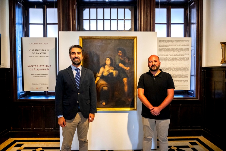 El concejal de Turismo, Comunicaciones y Promoción de la Ciudad, Joaquín Pérez de la Blanca, ha presentado esta obra acompañado de Alejandro Zamora, coordinador de la muestra. “Se trata de un óleo sobre lienzo del pintor Gutiérrez de la Vega, obra perteneciente a la colección de Francisco Salmerón”, a quien el edil ha agradecido su cesión temporal. “Pintura de carácter religioso que representa el momento del martirio de Santa Catalina y que fue pintada en la primera mitad del siglo XIX por este artista, un pintor que bebe de la tradición barroca sevillana”, ha explicado Pérez de la Blanca.