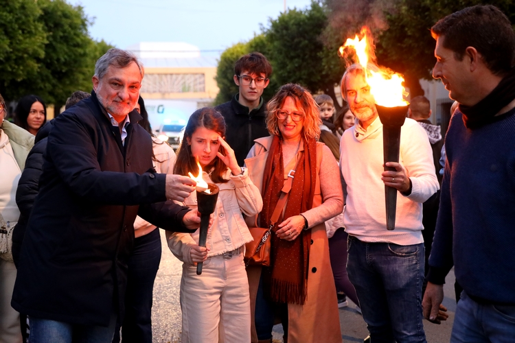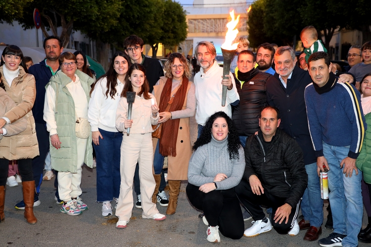 Posteriormente, se ha llevado a cabo el encendido de la antorcha en la plaza de la antigua biblioteca, que este año ha recaído en Miguel Ángel Pérez, vecino de la localidad y una persona muy participativa de la vida social de este núcleo, tanto a través de la asociación cultural La Aldeílla del Águila como en la propia celebración del San Antón, en la que cada edición participa portando la antorcha.
