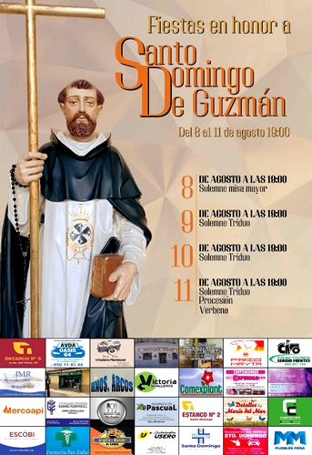 El barrio ejidense de Santo Domingo celebra en estos días sus fiestas para honrar a su Patrón, Santo Domingo de Guzmán. Para ello, se van a llevar diversos actos religiosos que arrancarán hoy jueves, 8 de agosto, con la celebración de la Misa Mayor a las 19.00 horas. Continuarán con el triduo que el domingo será a las 19.00 horas para después procesionar con la imagen por las principales calles de la localidad.