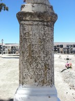 Leyenda en la Cruz “encalada”: EL B(achiller) MELCHOR AZORERO DE TALAVERA, B(eneficia)D(o) Y VICARIO DE ESTA VILLA, HIZO PONER ESTA CRUZ. AÑO DE 1668