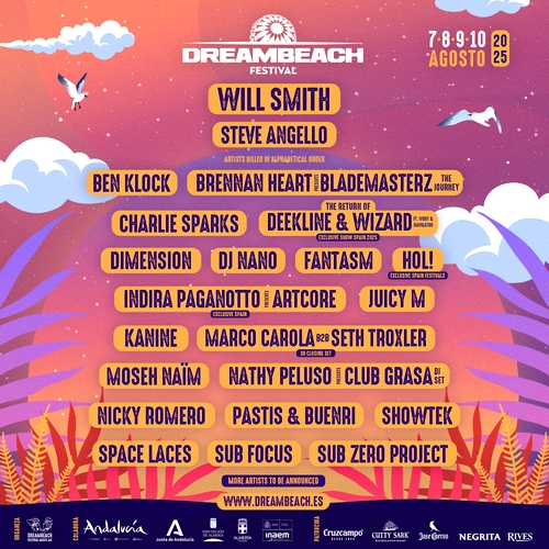 El festival almeriense ha sumado siete nombres en los últimos días, la mayoría de ellos que visitarán el festival por primera vez, que se suman a headliners como Will Smith o actuaciones exclusivas como Nathy Peluso presenta Club Grasa, Nicky Romero o el B2B de Marco Carola y Seth Troxler, con un special closing set de tres horas.