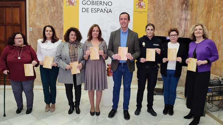 José María Martín ha hecho entrega de la guía (de izquierda a derecha) a la presidenta de ALFIAL Almería, Pilar Quesada; Eloísa Escudero, capitana enfermera de la Comandancia de la Guardia Civil en Almería; Begoña del Moral, jefa del servicio médico de Sanidad Exterior; María Luisa Maroto, jefa de Sanidad y Política social de la Administración General del Estado en Almería; Ana , representante de Policía Nacional, María Ángeles Muñoz, presidenta de ALFIEL El Ejido y María del Mar Lozano, enfermera de Sanidad Exterior.