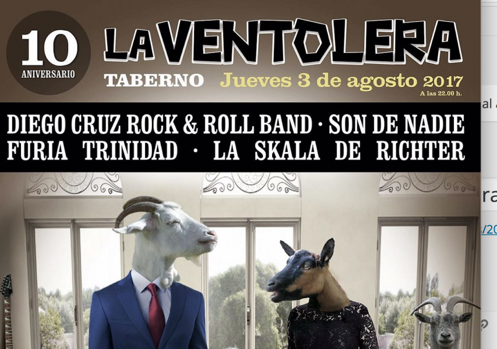 primer jueves de agosto hace 10 años arrancó en Taberno la Ventolera. Una iniciativa del Ayto dentro del programa de las fiestas patronales en modo encuentro temático, que cubre la tarde/noche del jueves con actividades diversas (talleres percusión, graffiti, danza, música), por el q han pasado formaciones de estilos como rock, soul, étnica, reggae, son, cumbia, swing, rumba, metal, punk, flamenco,…, de lugares como Congo, Brasil, ,Cuba, Argentina, Bulgaria, Francia, España,…, y donde siempre, en los programas de cada edición, se ha buscado la participacion de grupos de la zona, con un notable éxito.