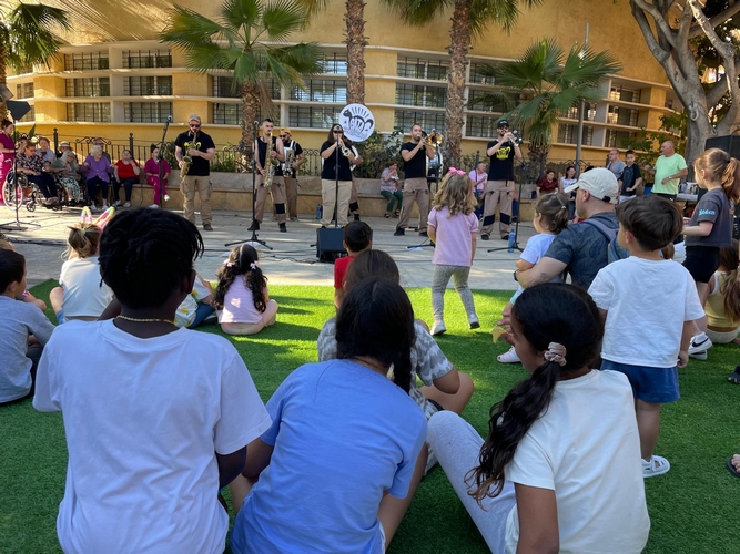 Talleres, juegos y la divertida actuación de Gata Brass Band reúnen a decenas de personas en el Día de las Familias