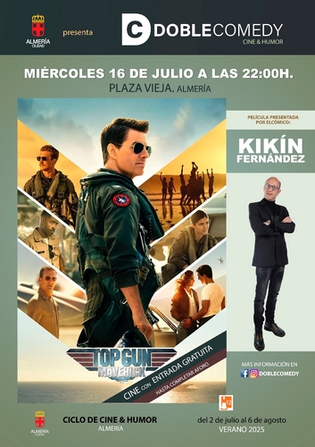 Tras el flamante estreno de ubicación con ‘Hook’ el día 2 y la sesión de ‘Jumanji’ del pasado miércoles día 9, la Plaza de la Constitución se prepara esta semana para recibir la tercera de las seis películas programadas como hará cada miércoles de julio y hasta el primero de agosto (día 6). La cita de esta semana será el miércoles, 16 de julio, a las 22.00 horas y con entrada libre, en este caso con la película ‘Top Gun Maverick’, que contará con la presentación especial del cómico almeriense Kikín Fernández.