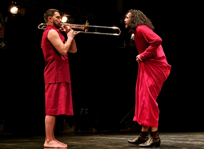 Las distintas secuencias no le van a la zaga en cuanto a la estimulación y poder epatante. Desde el mantra obsesivo repetido en más de una veintena de ocasiones del “nadie te va a querer como yo” de Javier al que sucedió un gran pasaje de danza contemporánea al son del trombón, pasando por ‘la huida’ al patio de butacas mientras sonaba el canto perseguidor de ‘I’ve got you under my skin’ de Sinatra. También reflejando la toxicidad y exceso de control en la anulación del otro en un poderoso solo corporal de Javier de la Asunción.