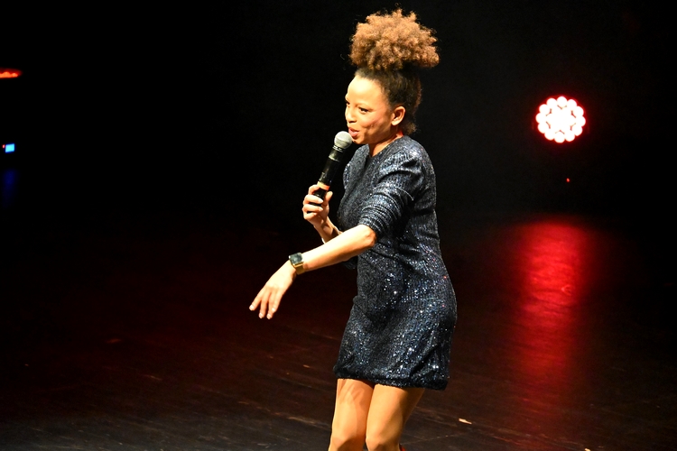 Seguidamente salía al escenario la sorprendente Makeba con mucha energía. Esta granadina de madre granadina y padre de Guinea Ecuatorial hizo referencia a sus orígenes en una actuación memorable. Con su pelo tan rizado es todo un espectáculo cuando se pone a hacer monólogos. “Yo soy de un barrio un poco peculiar de Granada. A la gente no le gusta a mi barrio y no se por qué. Mi barrio es peculiar, ya que las medias no se ponen de abajo a arriba, sino de arriba a abajo. En mi barrio la heroína no es una mujer, te va a buscar la ruina igual. Yo soy de Almanjáyar, un barrio alegre”, dijo Makeba.
