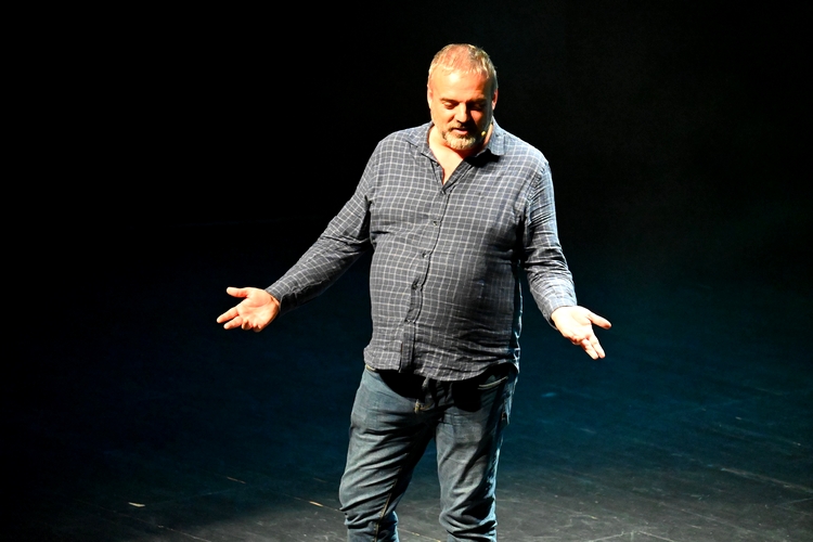 Álvaro Vera hizo su entrada en el escenario y dejó bien claro que “vosotros pensáis que esto es fácil, que los cómicos llegan al escenario, hacen reír, se bajan, cobran y se van a sus casas. Pues sí”. Alvarito con su estilo tan personal hacía referencia a la difícil convivencia que muchas veces se producen en las casas. “Vivimos en pisos de papel, donde escuchamos casi siempre a los vecinos”.