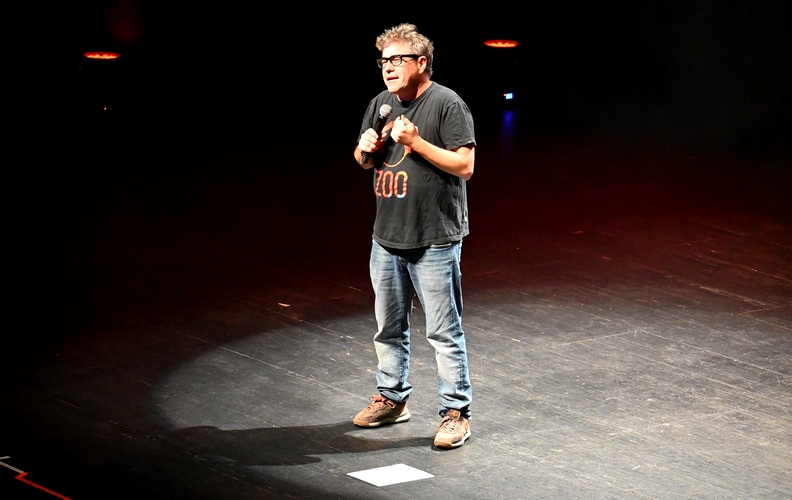 Por su parte, Paco Calavera arrancó con los atracones de Navidad. “En Almería si no comes y no bebes. ¿Que haces?. Pasear”, subrayó. “Las películas futuristas que veíamos de niño ya han quedado en el pasado. Ni naves espaciales ni nada. Lo que hay es que no llegas a final de mes y que si te sientas tienes que pedir raciones”, dijo, ante las risas del público.