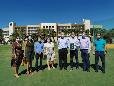 En este sentido, Delgado ha podido conocer de la mano del presidente del complejo, Pedro Lope, y del director gerente, Jacobo Lope, las instalaciones, que cuentan con un hotel de 4 estrellas con 284 plazas, un campo de golf con 18 hoyos y un spa; así como las medidas que se han puesto en marcha para evitar los contagios por coronavirus y que les ha valido conseguir el distintivo ‘Andalucía Segura’.