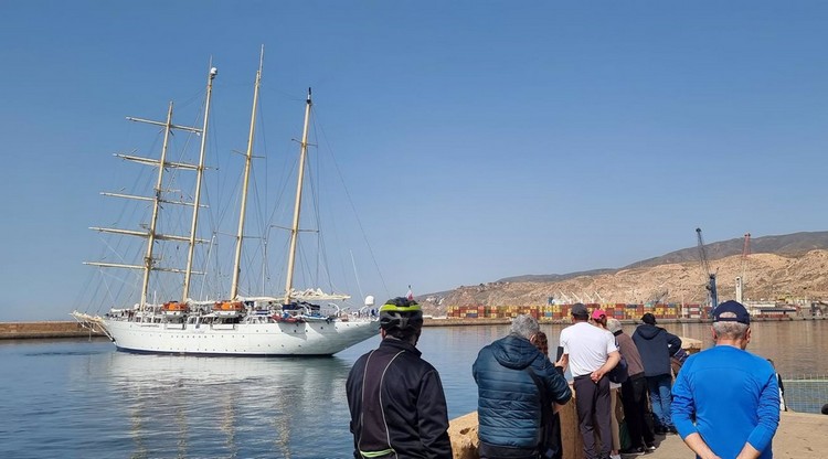 Al ser la primera vez que este barco de la naviera sueca Star Clippers hace escala en el Puerto de Almería, el presidente de la Autoridad Portuaria, Jesús Caicedo, ha asistido a una recepción ofrecida por el capitán del crucero, el señor Brunon, en la que han dado la bienvenida a los pasajeros y la tripulación, con el tradicional intercambio de placas conmemorativas.