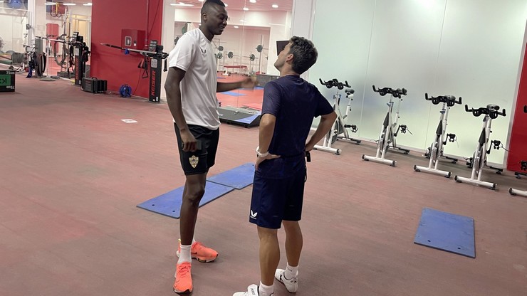 Sadiq Umar, delantero de la UD Almería y máximo goleador del equipo en la temporada del ascenso a Primera División, se ha incorporado a la disciplina rojiblanca; lo ha hecho este martes, como estaba previsto, y con permiso del club puesto que estuvo con la selección de su país, Nigeria, nada más terminar la Liga el pasado ejercicio. El nigeriano, recién llegado, se ejercitó en solitario en el gimnasio.