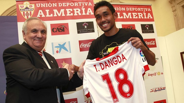 Teerasil Dangda, delantero tailandés de 26 años de edad, ha sido presentado este jueves de manera oficial como nuevo jugador de la UD Almería en un acto celebrado en el Patio de Luces de la Diputación Provincial donde el club rojiblanco también dio a conocer las equipaciones para la nueva temporada, con la presencia de todos los miembros del consejo de administración.
