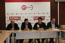 CCOO y UGT Almería consideran que uno de los colectivos que, en mayor medida, siguen sufriendo las consecuencias de la política de ajustes y de control del déficit es el de los jubilados ya que “de nuevo se ven afectados por un nuevo recorte”. Así lo han trasladado los Secretarios Generales de CCOO y UGT Almería, Juan Pallarés y Félix López, respectivamente, acompañados por el Secretario General del Sindicato de Pensionistas de CCOO Almería, Antonio Cañadas y el Secretario General de UJP UGT Almería, Luis López, en la rueda de prensa que han ofrecido esta mañana para analizar las consecuencias de la reforma de las pensiones.