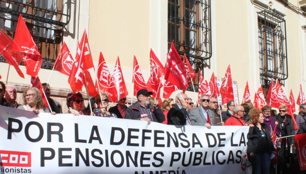 sindicatos CCOO y UGT han mostrado una vez más su rechazo a la subida de sólo 0,25% de las pensiones y se han concentrado para reivindicar la sostenibilidad del Sistema Público de Pensiones actual y futuro.
