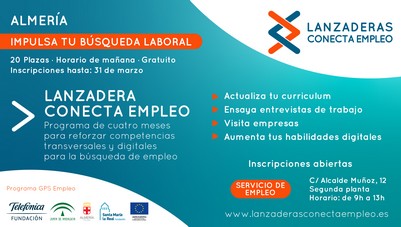 La inscripción puede realizarse online, en la web del programa Lanzaderas Conecta Empleo (www.lanzaderasconectaempleo.es), o de forma presencial en el Servicio de Empleo de Almería