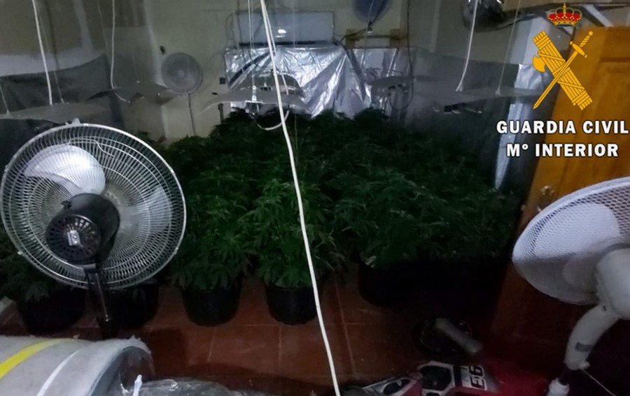 Cuando los agentes de la Guardia Civil procedieron a la inspección de la vivienda localizaron en el sótano un cultivo indoor de Marihuana (Cannavis sativa) de 32 plantas y 331 gramos de cogollos dispuestos para el consumo y venta.