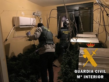 La Guardia Civil, en el marco de la Operación Palmeplan, ha detenido a M.A.M., de 33 años, por un delito contra la salud pública y otro delito de defraudación de fluido eléctrico por el cultivo indoor de