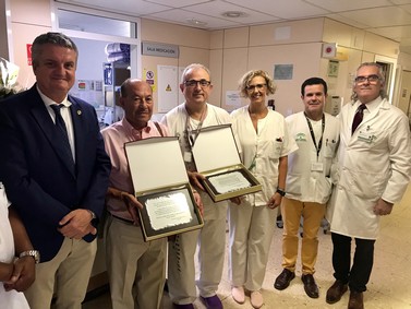 En el acto han estado presentes el delegado territorial de Salud y Familias, Juan de la Cruz, el director gerente del centro sanitario almeriense, Manuel Vida y el jefe de la Unidad de Cardiología, Ricardo Fajardo, quienes han recogido la placa en la que el paciente expresa que cada latido de su “nuevo corazón, es una muestra de agradecimiento al equipo de Cardiología del Hospital Torrecárdenas y a todo su personal por el trato recibido”.