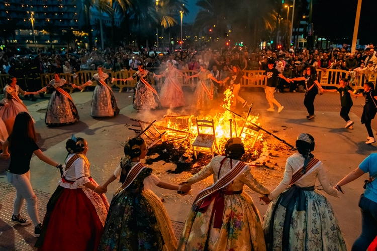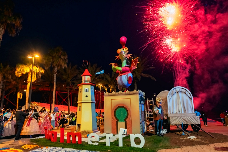 Un gran castillo de fuegos artificiales y la cremá de las fallas ponen el broche a la undécima edición de ‘Fallers pel Món’ celebrada en Almería
