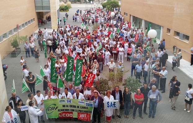 La Central Sindical Independiente y de Funcionarios, CSIF Almería, ha reunido este lunes 29 de septiembre, a más de un millar de personas en la concentración convocada para denunciar el cierre de 30 camas en el Hospital de La Inmaculada de Huércal Overa, durante los meses de octubre y noviembre, en concreto en la la planta de Cirugía. En el acto reivindicativo, convocado por CSIF, han participado trabajadores, ciudadanos de los municipios del Levante almeriense, asociaciones y colectivos vecinales y demás sindicatos de la Junta de Personal del complejo hospitalario.