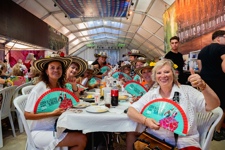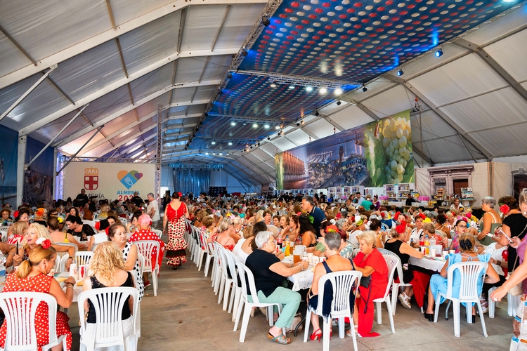 Diez años. Un millar de vecinas. Usuarias activas de los centros de la mujer. Es el tradicional Homenaje a la Mujer que organiza el Ayuntamiento de Almería, y al que, como es habitual, ha asistido la alcaldesa, María del Mar Vázquez, acompañada por la concejala de Familia, Inclusión e Igualdad, Paola Laynez, y el resto del equipo de gobierno municipal. Alegría, compañerismo, buen humor en esta fiesta, para disfrutar también de la comida, la música y concursos de trajes de flamenca.