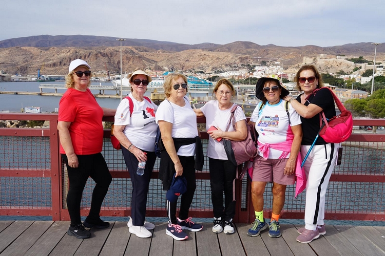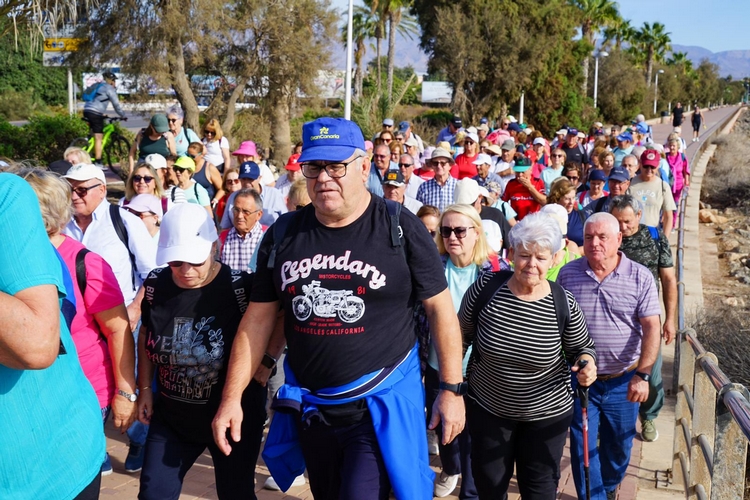 La Olimpiada de Mayores ha vuelto una temporada más con su formato habitual de recorridos senderistas, tanto urbanos como rurales, tras el parón veraniego. En esta ocasión, los 180 inscritos han visitado la capital para hacer un recorrido de unos siete kilómetros y medio entre la Universidad de Almería y el Cable Inglés, desde donde pudieron disfrutar de unas hermosas vistas de la ciudad y de la zona portuaria. La escasa dificultad orográfica que presentaba el recorrido de hoy y la buena meteorología que ha acompañado a los pensionistas y jubilados vicarios, ha hecho que hayan podido disfrutar de una excelente jornada junto al mar.