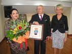 Al terminar el acto, Pedro Escacena recibió de manos de la Teniente Alcalde de la Ciudad un escudo del municipio, firmando en el Libro de Honor del Museo Taurina para terminar.