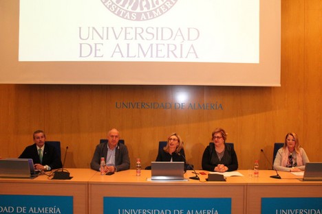 La delegada territorial de Igualdad, Salud y Políticas Sociales, Francisca Serrano, ha participado en la presentación de la conferencia, junto a la vicerrectora de Estudiantes y Empleo de la UAL, María Isabel Ramírez y la presidenta de AMAMA, Belinda Pérez.