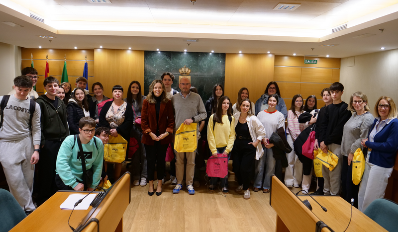 La concejal de Turismo del Ayuntamiento de El Ejido, María Herminia Padial, ha recibido esta mañana en el Salón de Plenos del Ayuntamiento de El Ejido a un grupo de 11 estudiantes procedentes del centro educativo Lycée Paul Langevin en la Seyne-sur-Mer de la ciudad francesa de Toulon junto a tres de sus profesores, que están participando en una movilidad europea dentro de un proyecto Erasmus+ junto al IES Murgi de El Ejido. Una visita en la que también han estado presentes 11 alumnos del IES Murgi y dos profesores de este centro educativo ejidense.