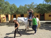Durante la segunda jornada ya alimentaban a los caballos y se encargaron del cepillado y el aseo de los animales, incluso muchos de ellos ya se atrevieron a montarlos. Las dos últimas sesiones han estado centradas en el contacto directo con los equinos, trabajando la interacción entre persona y animal y en otros aspectos beneficiosos de la hipoterapia, no sólo físicos, también emocionales.