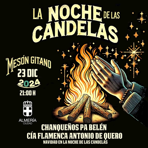 La Noche de las Candelas vuelve un año más al Mesón Gitano y lo hará el próximo lunes, 23 de diciembre, a partir de las 21.00 horas y con entrada libre, con la participación de la Compañía Flamenca de Antonio de Quero y el cuadro flamenco de Chanqueños pa’ Belén. Todo ello con entrada libre, con degustación de potaje gitano, barras y la entrega previa de las distinciones que cada año realiza la Asociación de Vecinos Nuestra Señora de la Paz.