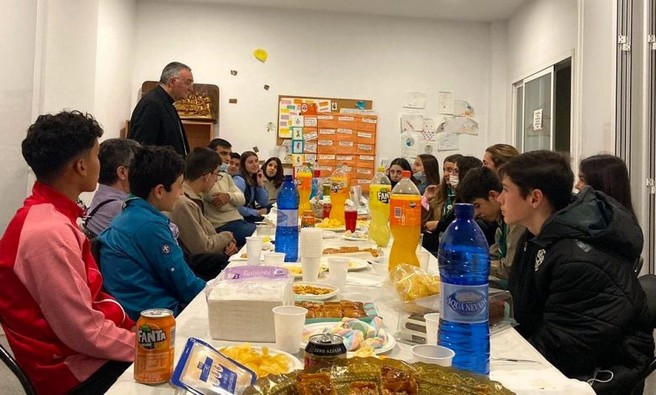Nuestro Obispo D. Antonio prometió al grupo de jóvenes que se confirmaron recientemente en la parroquia de Jesucristo Redentor de la capital que quedarían para cenar un día y compartir las impresiones y proyectos después de haber confirmado la fe. Dicho y hecho. El pasado viernes, 18 de marzo participó de una cena distendida con algunos jóvenes de la parroquia, de distintos grupos de catequesis, del grupo scout valhalla y de formación bíblica. Durante la cena y posterior conversación los ha animado a no abandonar la parroquia, a seguir con sus amigos haciendo cosas por la parroquia, porque son el presente y el futuro de la Iglesia.